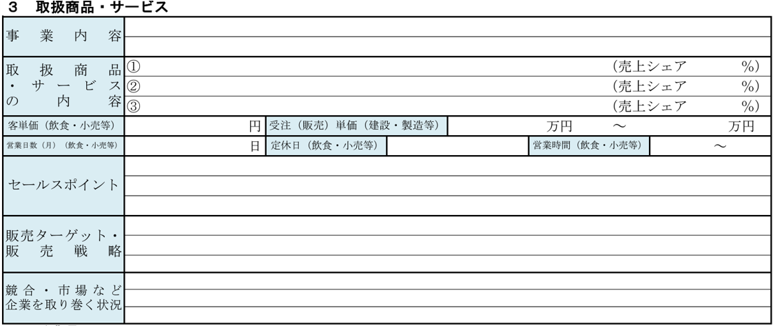 その強みがターゲットとなる顧客ニーズにどう応えるのか、競合店との差別化につながる根拠を説明できれば、説得力や信頼度を高められるでしょう。