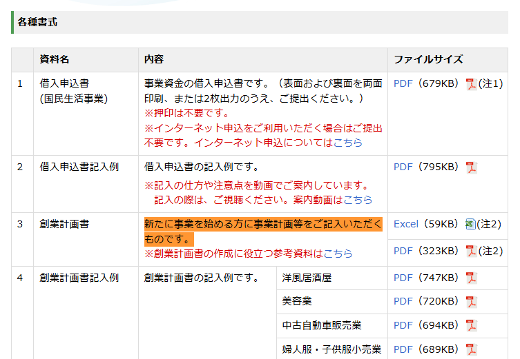 事業計画書のテンプレートをダウンロードできるサイト|日本政策金融公庫