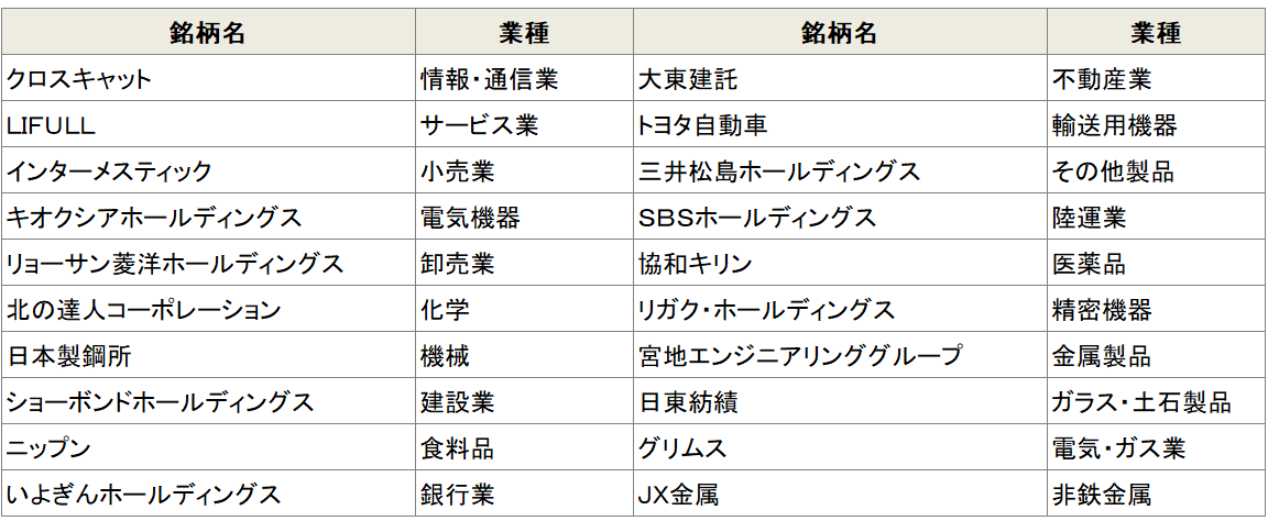 そのため、地方の有力企業や旧東証一部から基準未達で移行した企業など、多様な業種・規模の企業が集まっています。