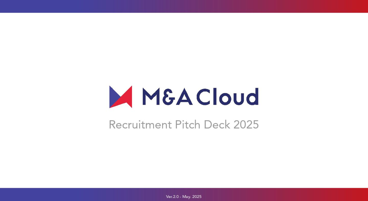 M&Aクラウドの採用 ピッチ資料は、テクノロジーによるM&Aの流通革命を掲げ、会社のビジョンや向かうべき未来を明確に示しています。